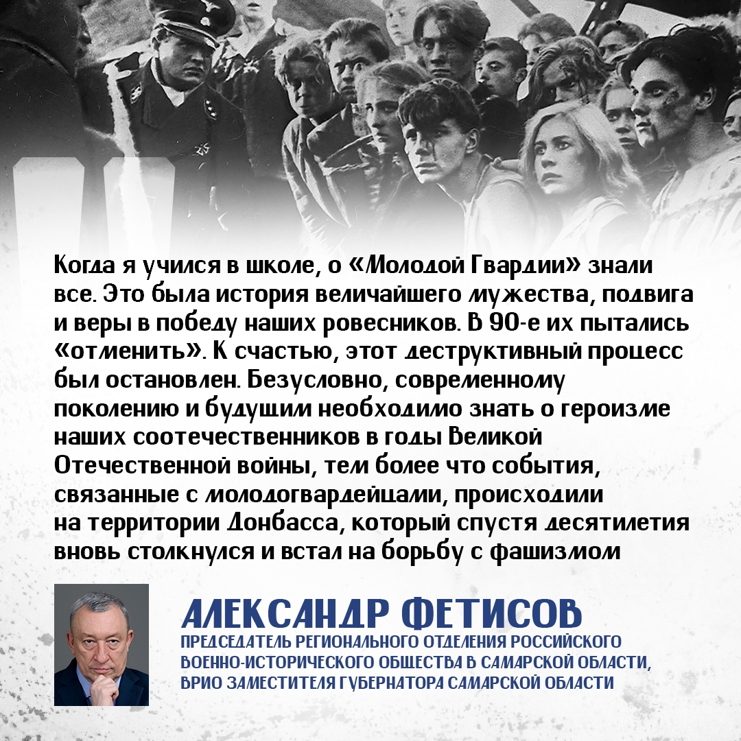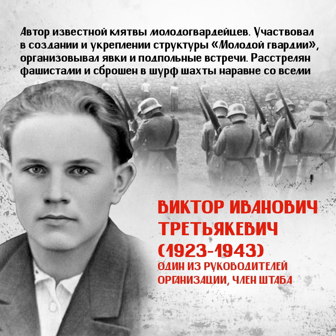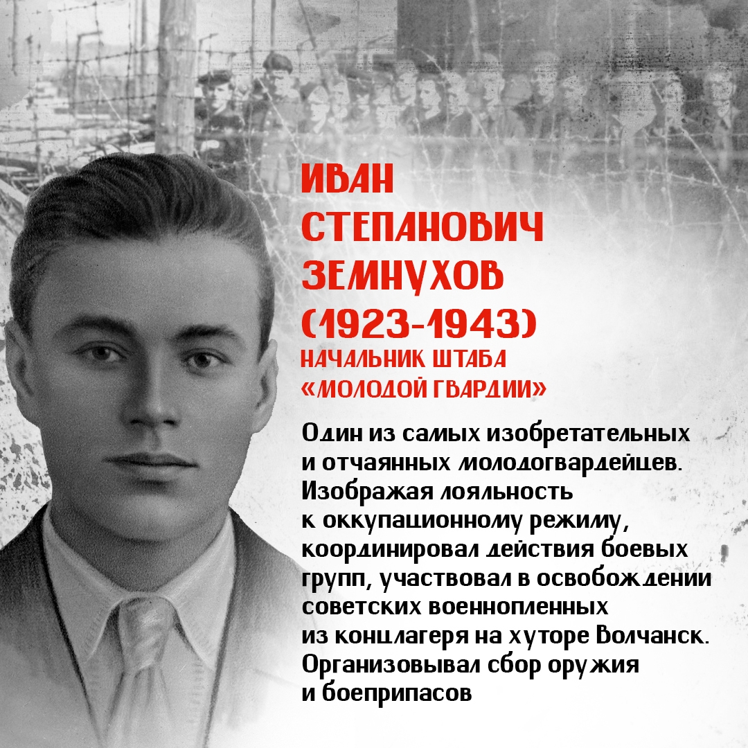 Юные герои — Олег Кошевой, Ульяна Громова, Любовь Шевцова, Виктор Третьякевич, Сергей Тюленин и другие выдержали нечеловеческие пытки и погибли за сопротивление фашистской оккупации. Они были казнены гитлеровцами, так и не выдав своих. Большинству ребят было по 17-18 лет, а самому младшему едва исполнилось 14.
