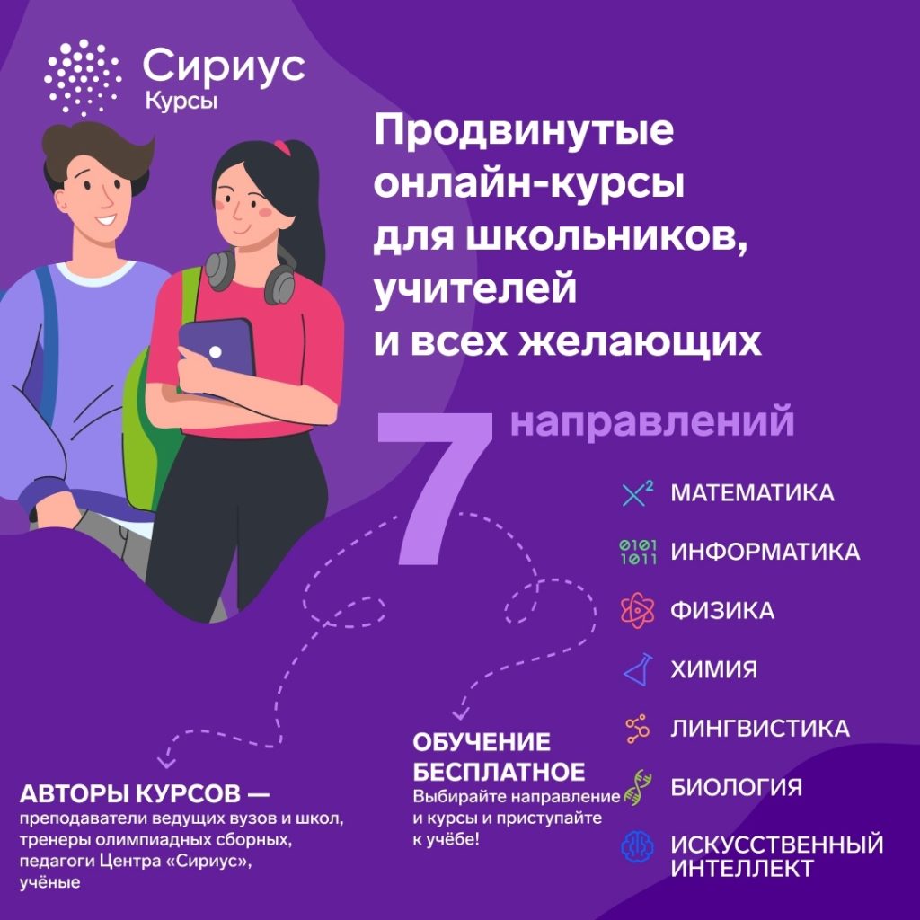 Онлайн-школа «Сириус.Курсы» — бесплатные программы по разным предметам для школьников 7–8 классов и старше.