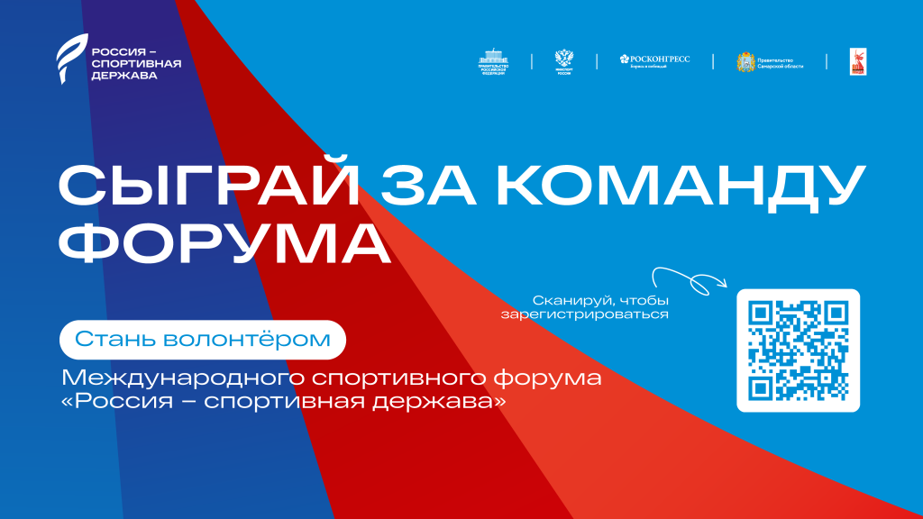 С 5 по 7 ноября в Самарской области пройдёт XIII Международный спортивный форум «Россия – спортивная держава», оператором которого является фонд Росконгресс. Участие в нём примут более 3000 делегатов из разных стран мира. А помогать в организации форума будут волонтёры. Чтобы стать одним из них, необходимо подать заявку на сайте Добро.рф по ссылке https://dobro.ru/event/11244427.