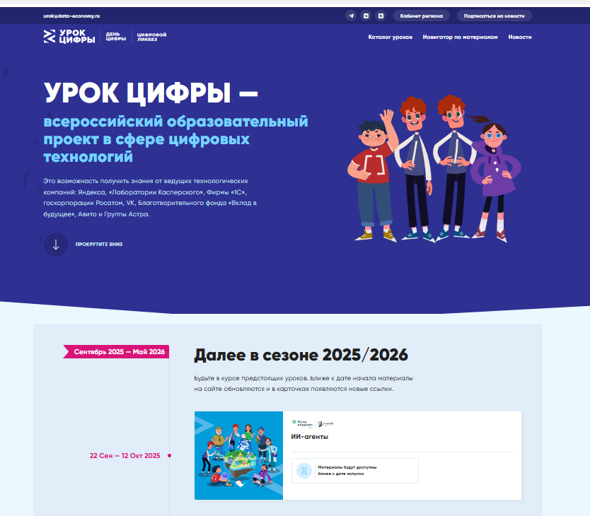 С 22 сентября по 12 октября 2025 года пройдёт первый в новом сезоне «Урок цифры» на тему «ИИ-агенты». Партнёр урока и разработчик содержания – Благотворительный фонд Сбербанка «Вклад в будущее» при экспертной поддержке Сбера и команды GigaChat.