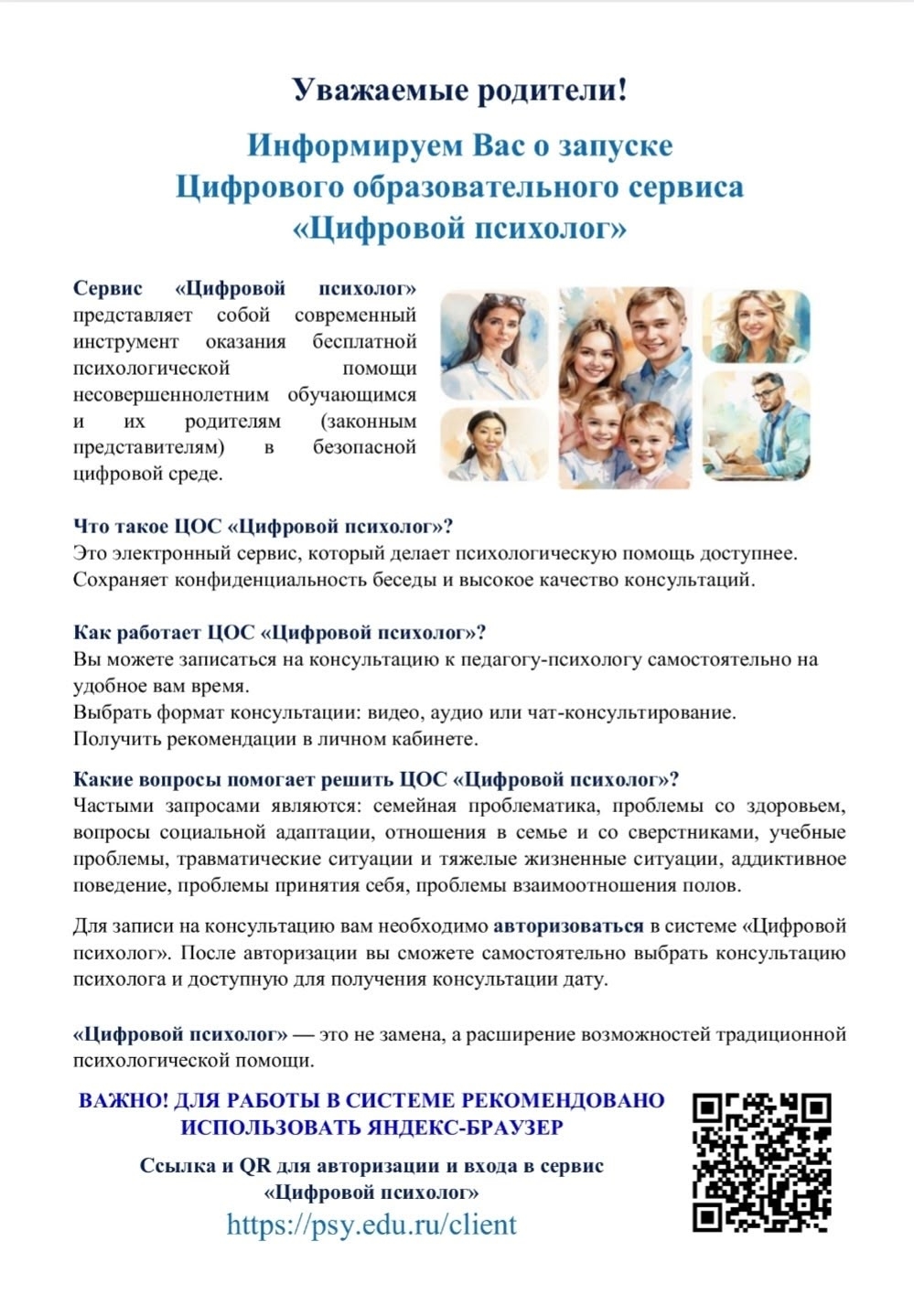 Информируем о запуске Цифрового образовательного сервиса «Цифровой психолог».